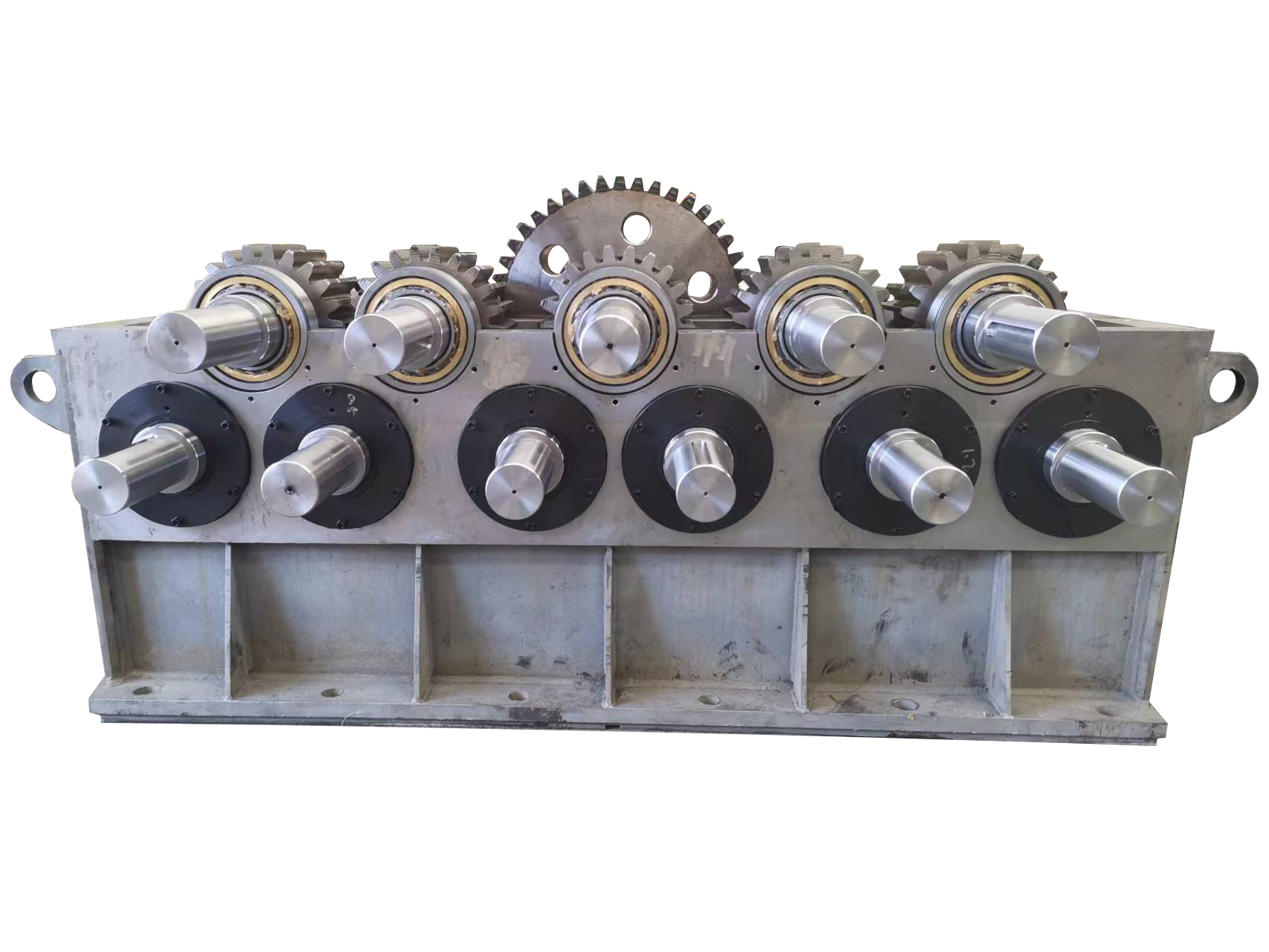 箱體材料:Q235A→加工:粗加工,粗銑,精度5mm→焊接:先鉚后焊→退火噴砂:消除焊接硬力→噴漆:噴底漆防銹